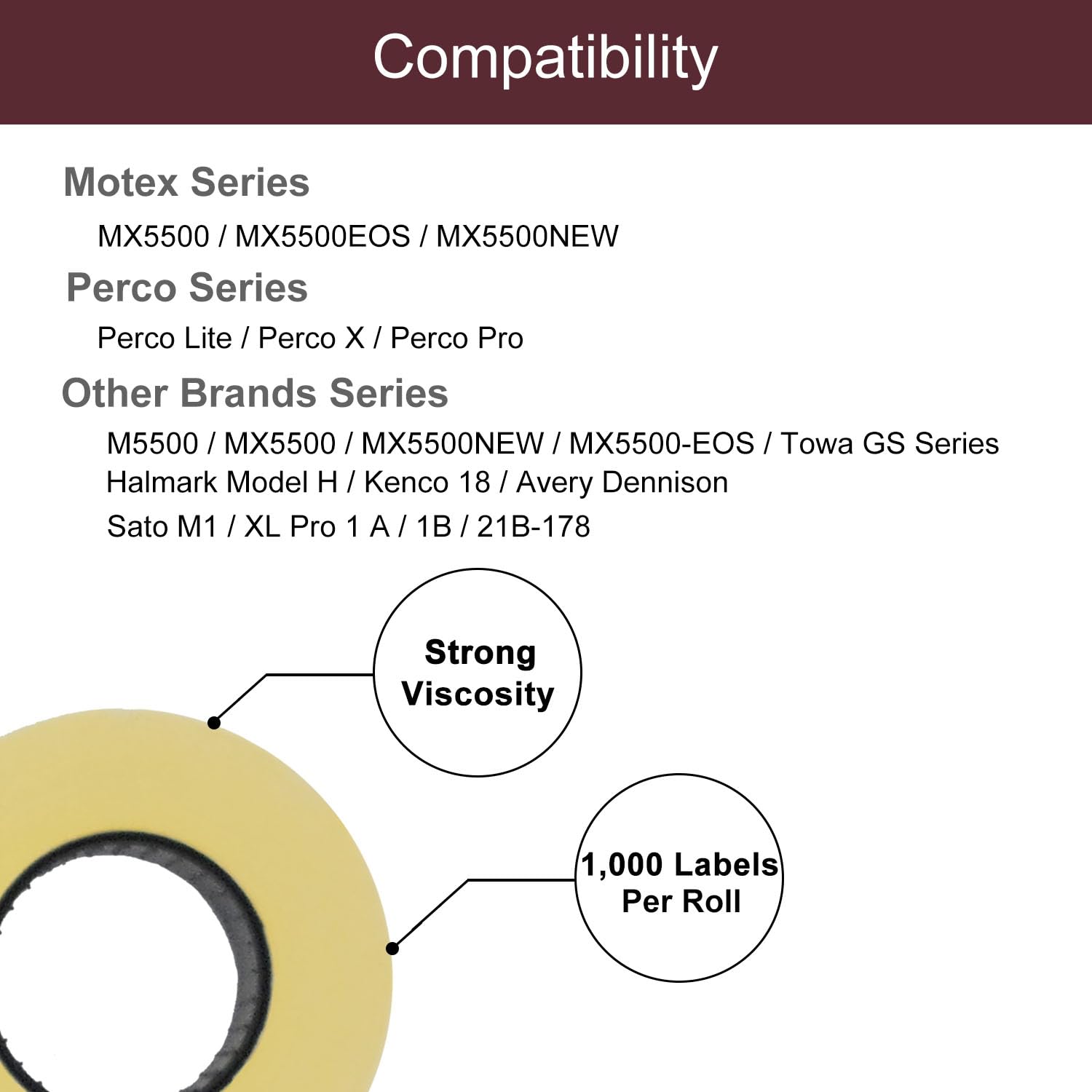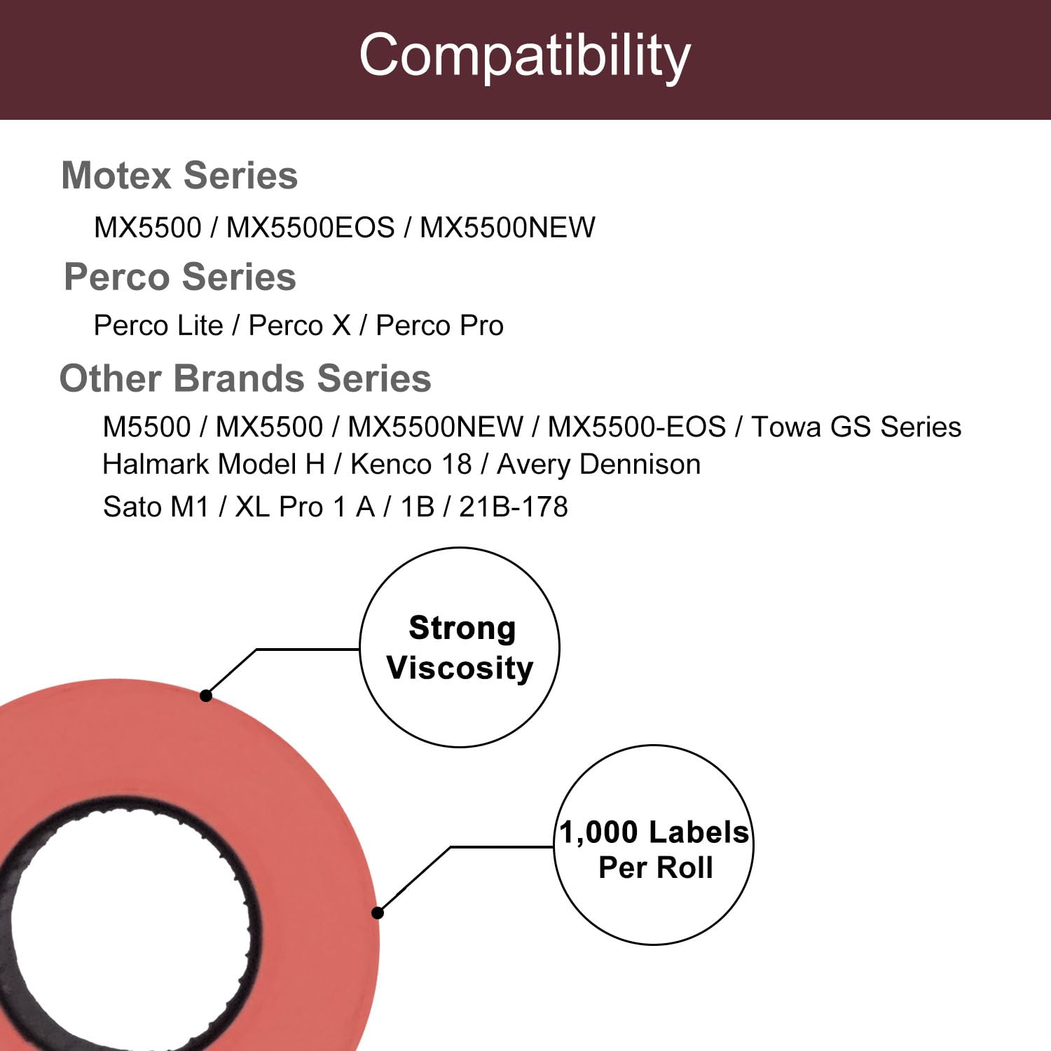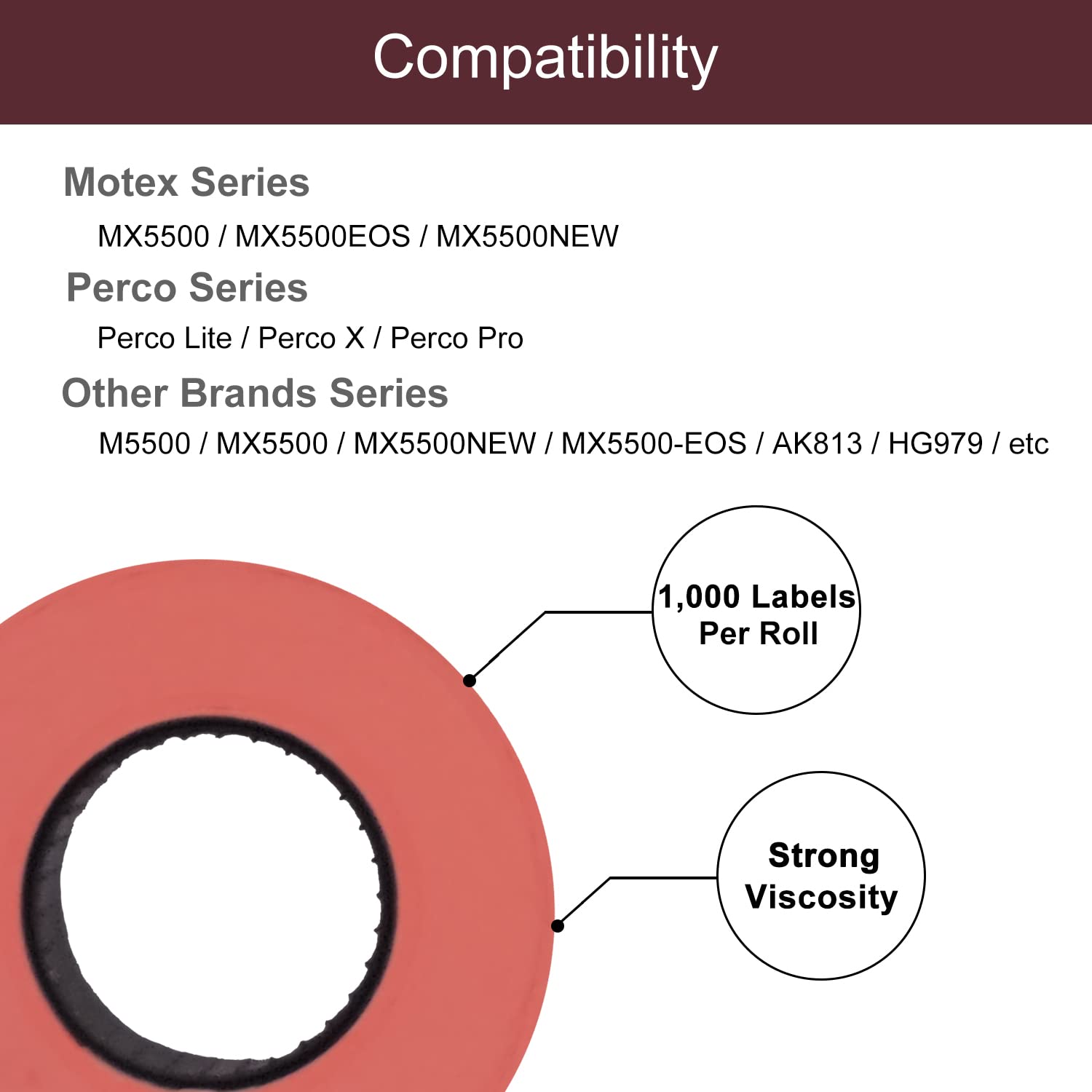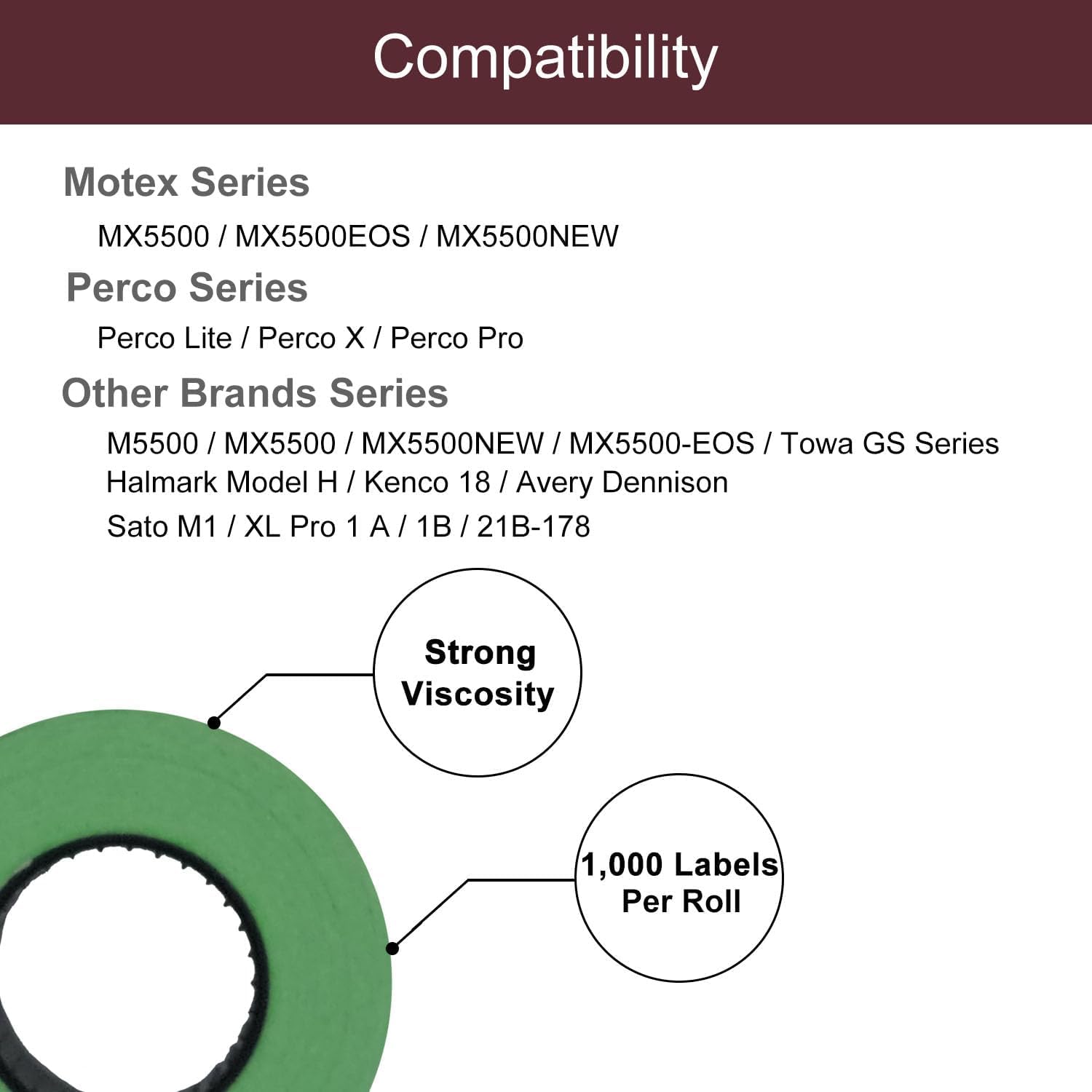 - Labels Compatibility – Our labels are compatible with most of 1 line price/date gun, Perco 1 Line Lite/X/Pro, M5500, MX5500, MX5500NEW, MX5500-EOS, AK813, HG979, etc.